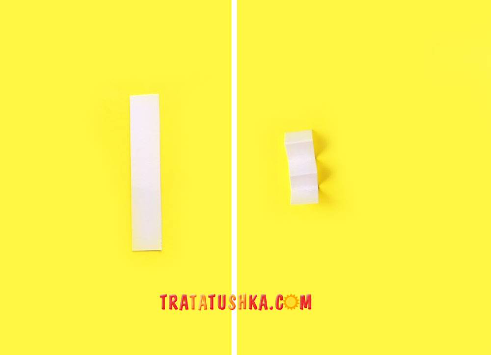 Складіть смужку гармошкою. Для цього загніть край, злегка пригладьте згин, потім переверніть заготовку і знову зробіть згин. Шия не повинна бути занадто довгою, достатньо зробити близько двох сходинок. Якщо залишиться зайва частина, що робить шию надто високою, то відріжте її ножицями.